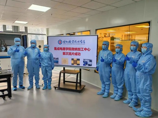在德州职业技术学院集成电路制造工艺实践中心,一片硅片经过薄膜制备、光刻图形化、刻蚀、清洗去胶、封装键合、功能测试,成功制造出多颗可用于传感器的集成电路芯片,流片成功标志着在我国北方地区职业院校中,首个真正实现“从硅片到芯片”全流程制造的实践教学平台已经初步建成;未来该专业学生们也可以亲手将一枚光秃秃的硅片,制造成一颗具备特定功能的、可测试可应用的集成电路芯片。