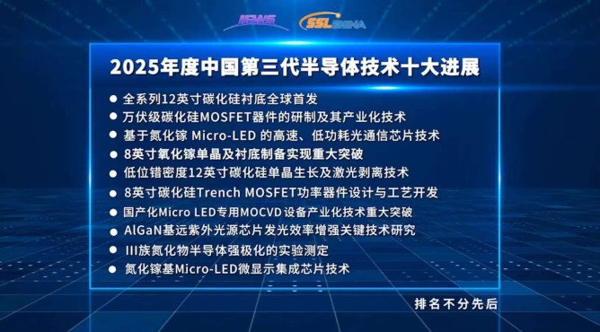 11月12日,IFWS&SSLCHINA2025在厦门盛大开幕。开幕式上,第三代半导体产业技术创新战略联盟理事长、国家新材料产业发展专家咨询委员会委员吴玲现场揭晓“2025年度中国第三代半导体技术十大进展”入选结果。